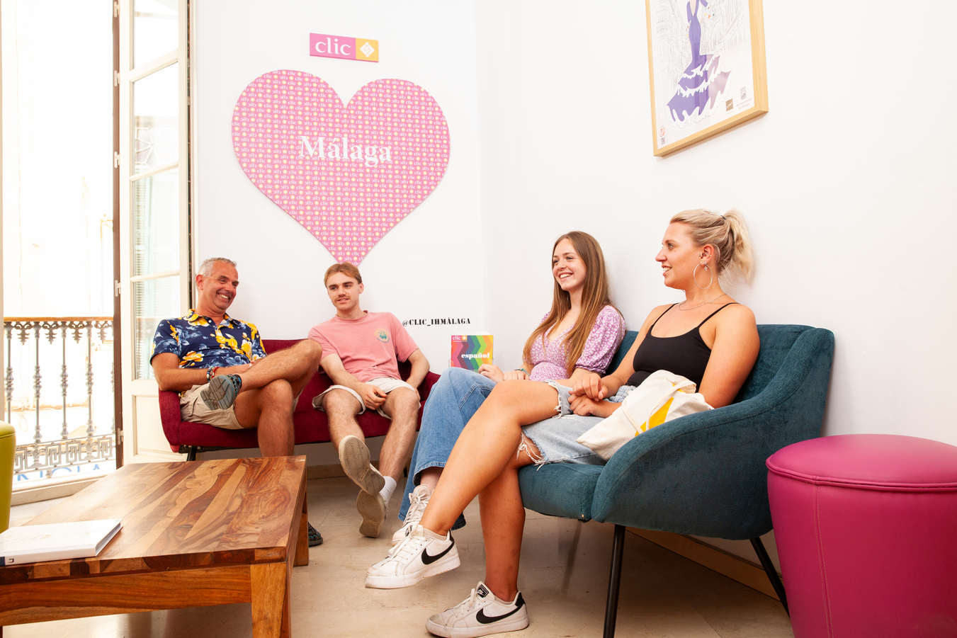 CLIC Málaga ist die jüngste Tochterschule von CLIC Sevilla und wurde im Frühjahr 2017 eröffnet. Sie liegt mitten im Herzen der Altstadt, unweit von der Plaza de la Constitución. CLIC eine kleine Boutique Sprachschule mit hellen und modern eingerichteten Schulzimmern. Je nach Anzahl Sprachlernenden an der Schule können weitere Klassenzimmer in einem Nebengebäude zum Einsatz kommen. Neben qualitativ hochstehendem Unterricht kommen die Teilnehmenden in den Genuss eines aktiven Freizeitprogramms. Das Angebot an Kursen reicht von Allgemein Spanisch, über DELE-Vorbereitung bis hin zu 50+ Kursen.